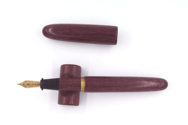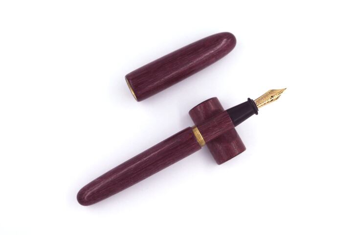 中米から南米中部に生息するマメ化の広葉樹。材色が紫色系のpeltogyne属の木の総称。名前の通り独特の薄紫色の色調を持つ木材。そのような材を素材に、伝統工法轆轤を駆使して製作した手作り万年筆です。