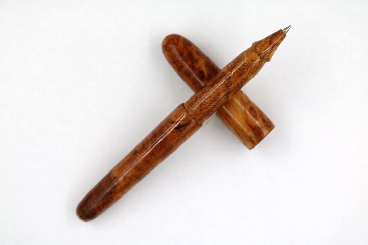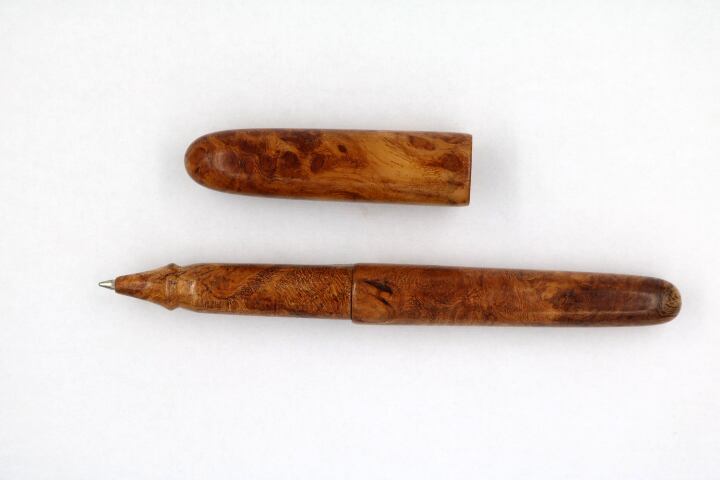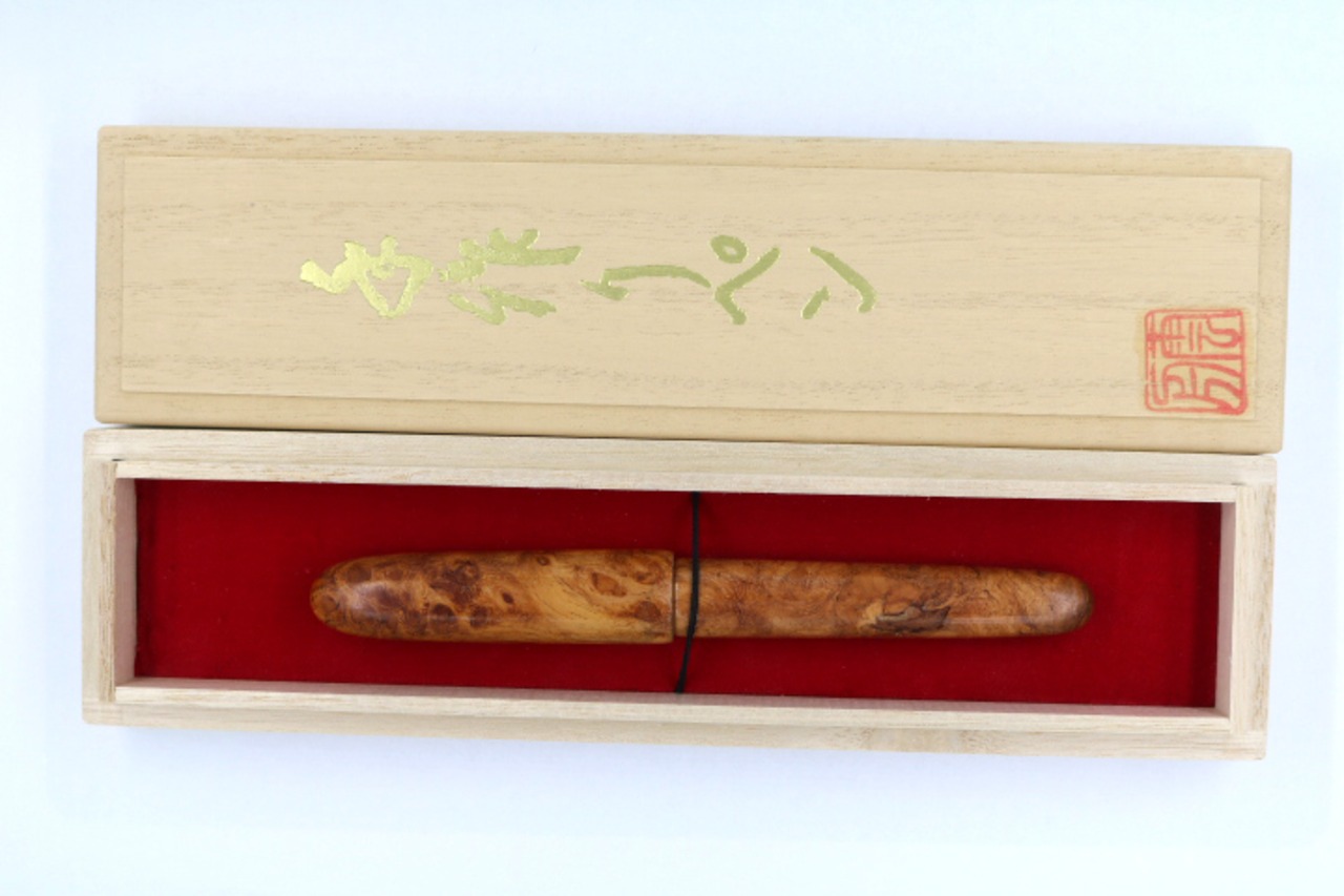 東南アジアに生息するマメ科の広葉樹。大径木のカリンならではの瘤が出ます。バラ科のカリンとは異なります。そういった銘木を素材に伝統工法轆轤を駆使して製作した手作りボールペンです。替え芯はヨーロッパのスタンダードサイズを採用。