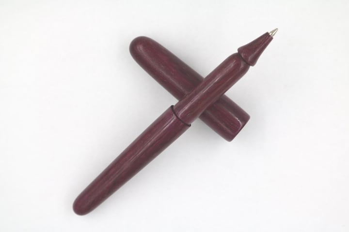 中米から南米中部に生息するマメ化の広葉樹。材色が紫色系のpeltogyne属の木の総称。名前の通り独特の薄紫色の色調を持つ木材を素材に伝統工法轆轤を駆使して製作した手作りボールペンです。替え芯はヨーロッパのスタンダードサイズを採用。