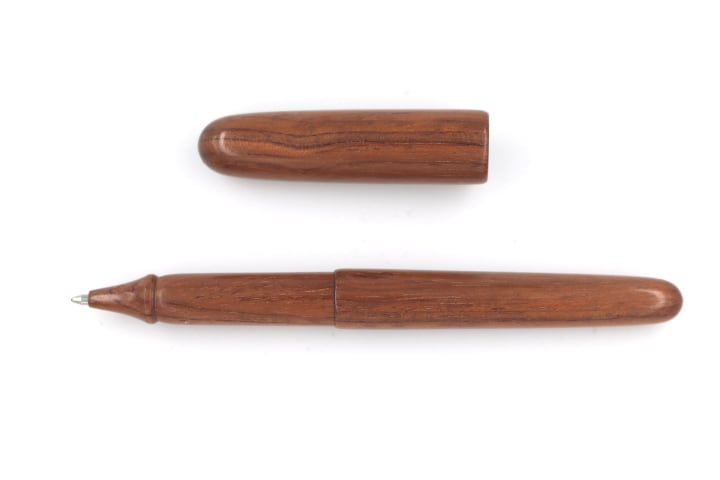 中央・西アフリカ原産の大径木。赤い色味、独特の杢に特徴がある。そのような材料を素材に伝統工法轆轤を駆使して製作した手作りボールペンです。替え芯はヨーロッパのスタンダードサイズを採用。