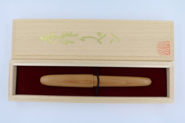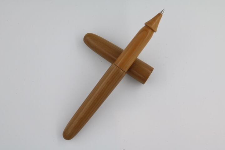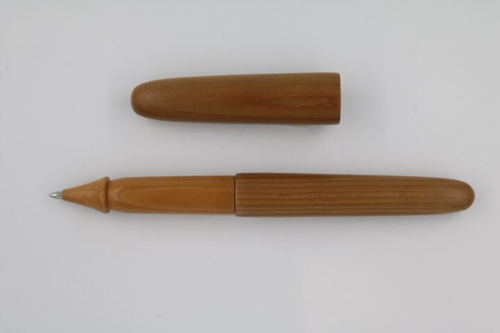 北海道から九州にかけての国産針葉樹。針葉樹としては硬くて仕上がりが綺麗。一刀彫作品にも使用される。そのような材料を素材に伝統工法轆轤を駆使して製作した手作りボールペンです。替え芯はヨーロッパのスタンダードサイズを採用。
