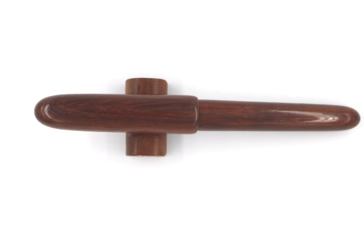カリンの仲間。外材の大径木の中では比較的柔らかく加工しやすい木。マリンバなどの打楽器にも使用される。そのような材を素材に、伝統工法轆轤を駆使して製作した手作り万年筆です。
