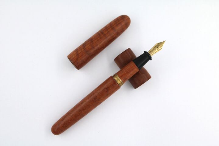 胸高直径が1mを超える大径木で大きな材が取れる唐木。環境によって木質が変かします。そのような材を素材に、伝統工法轆轤を駆使して製作した手作り万年筆です。