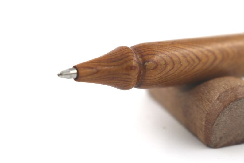 屋久島の標高500mを超える山地に自生しているスギの中でさらに樹齢千年を超えるものを屋久杉と呼んでいます。現在は伐採禁止。そういった木材を素材に伝統工法轆轤を駆使して製作した手作りボールペンです。替え芯はスイス製カランダッシュ製(CARAN d'ACHE)に対応しております。。