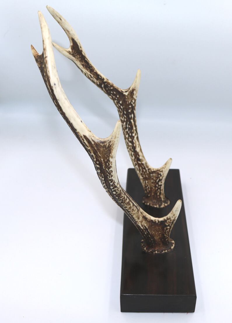 刀掛け風のペンスタンドです。土台は縞黒檀。鹿の角は日本鹿のものです。